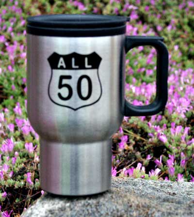 Brass Ring Multimedia design: All 50 Corvette "Route Sign" logo on stainless steel mug (image)