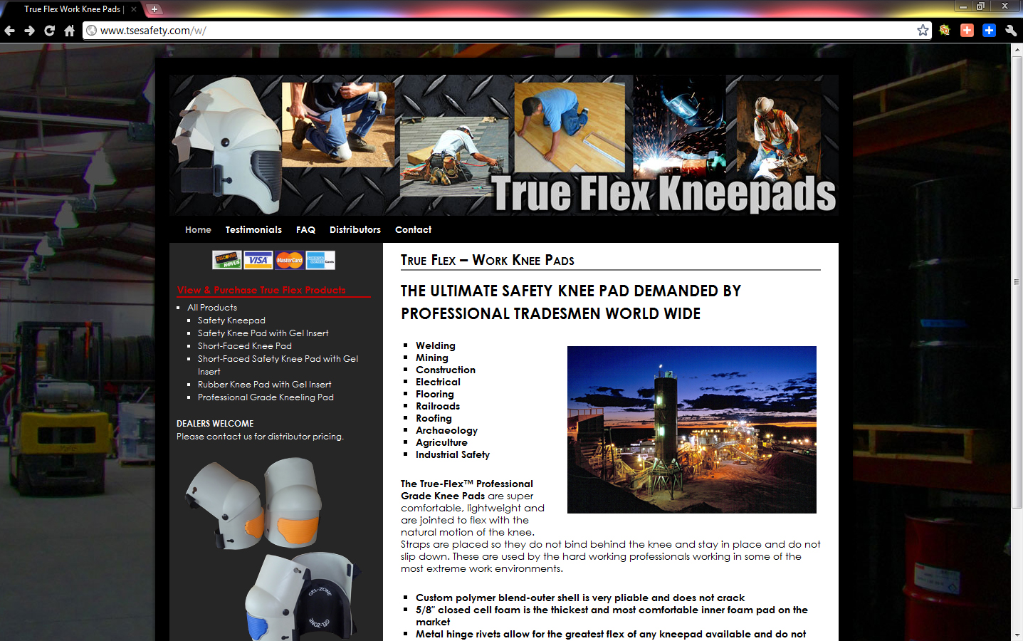 WordPress website design for True Source Enterprises, Inc., creators of True Flex Knee Pads. True Flex Knee Pads are the ultimate safety knee pad. They’re a great product serving welding, mining, construction, electrical, flooring, railroad, roofing, archaeological, agricultural and industrial safety workers with superior protection.